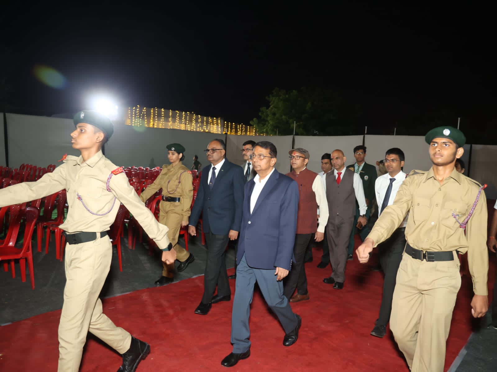As per the institution’s tradition, the special guest Honourable Col Sanjay Sinha, Head of Education, JK Cement Vertical was received by the Head Boy – Shreyansh Jain,