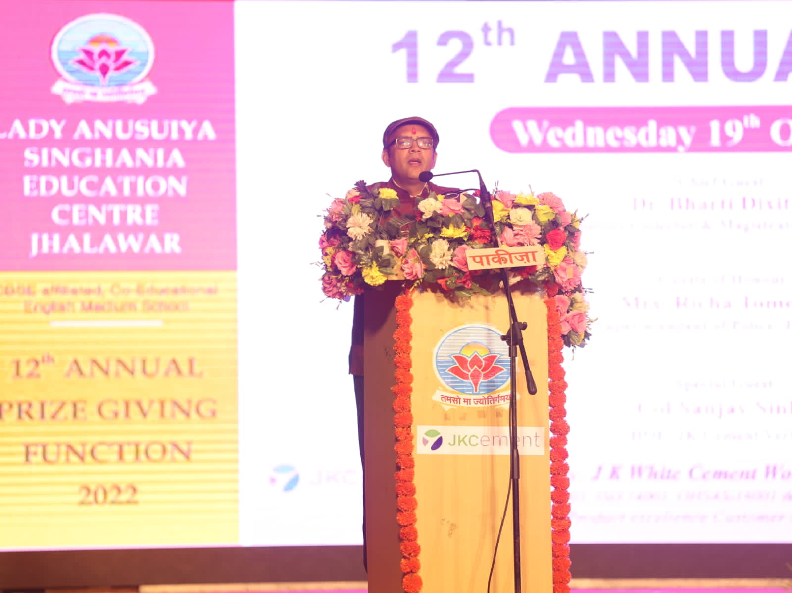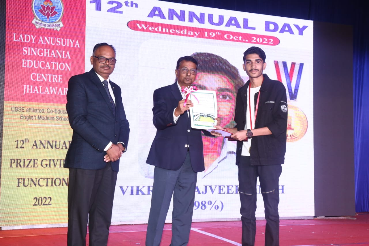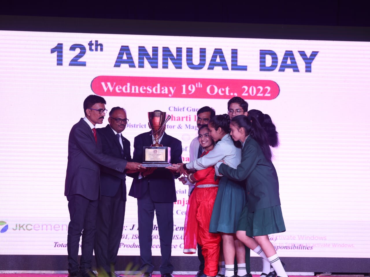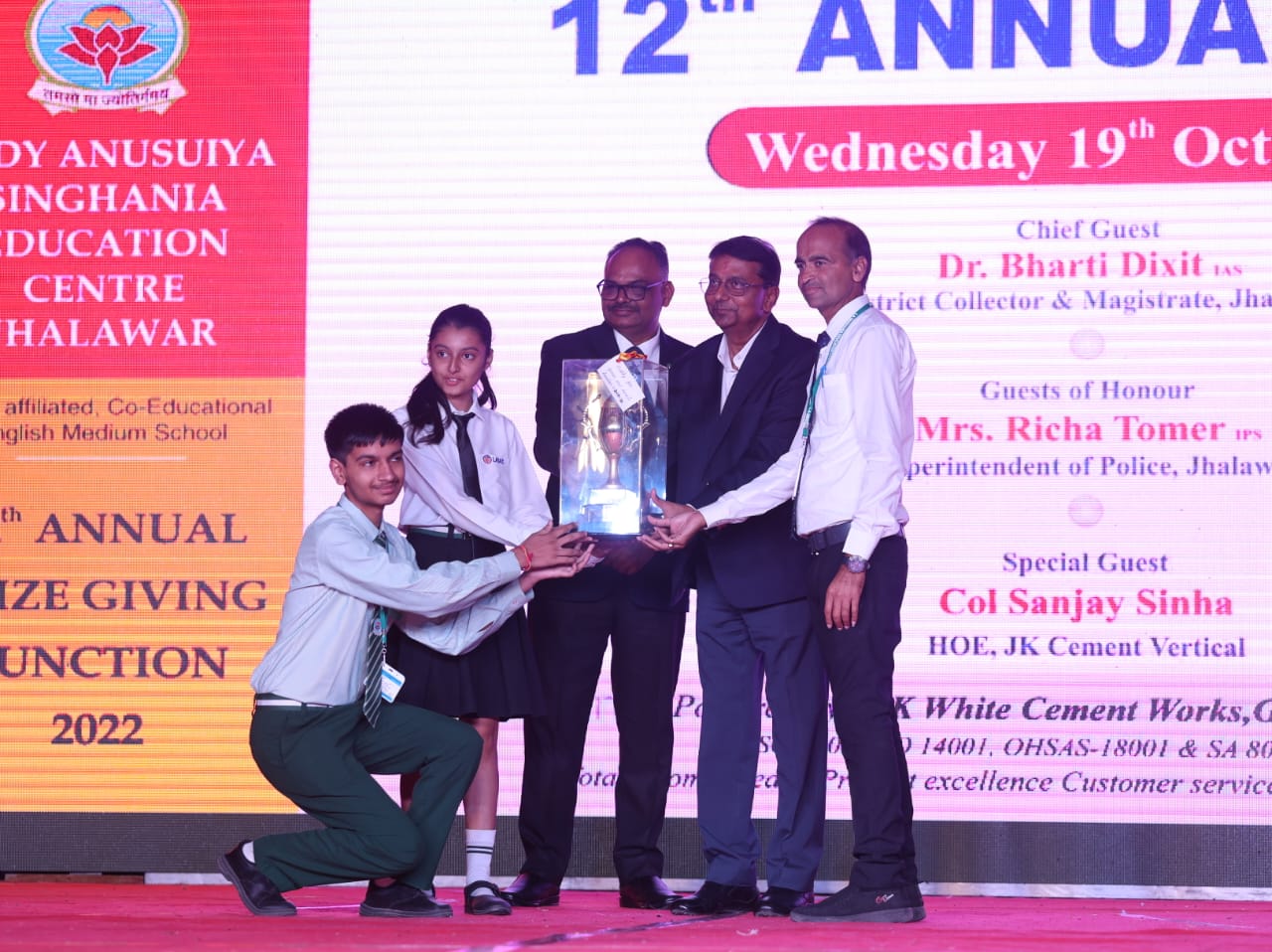 honoured by the special guest Honourable Col Sanjay Sinha, Head of Education, JK Cement Vertical.