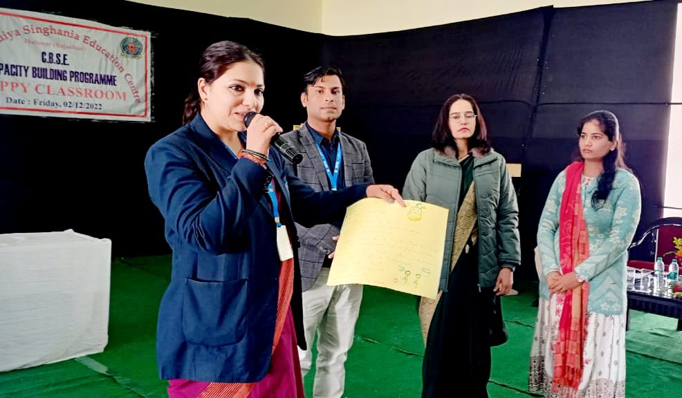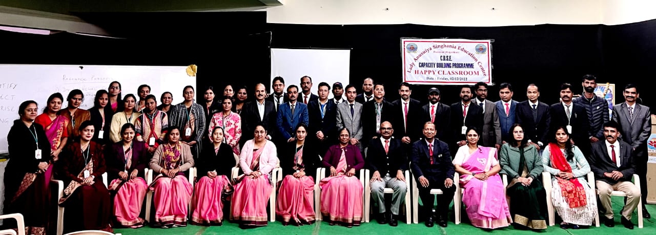 A workshop on Happy Classroom was organized by CBSE at Lady Anusuiya Singhania Education Center Jhalawar. As a resource person by CBSE, Dr. Nischal Gupta Principal Poddar International School Ratlam and Ms. Sampadas Deputy Principal Ekeyana School Indore were appointed.