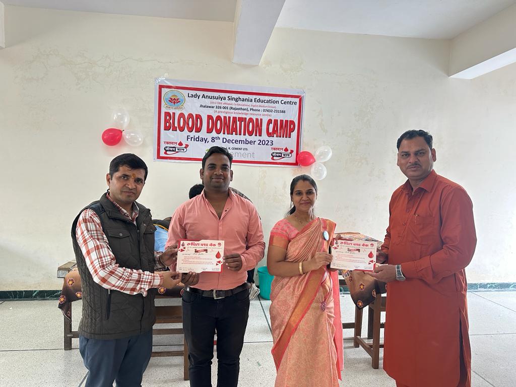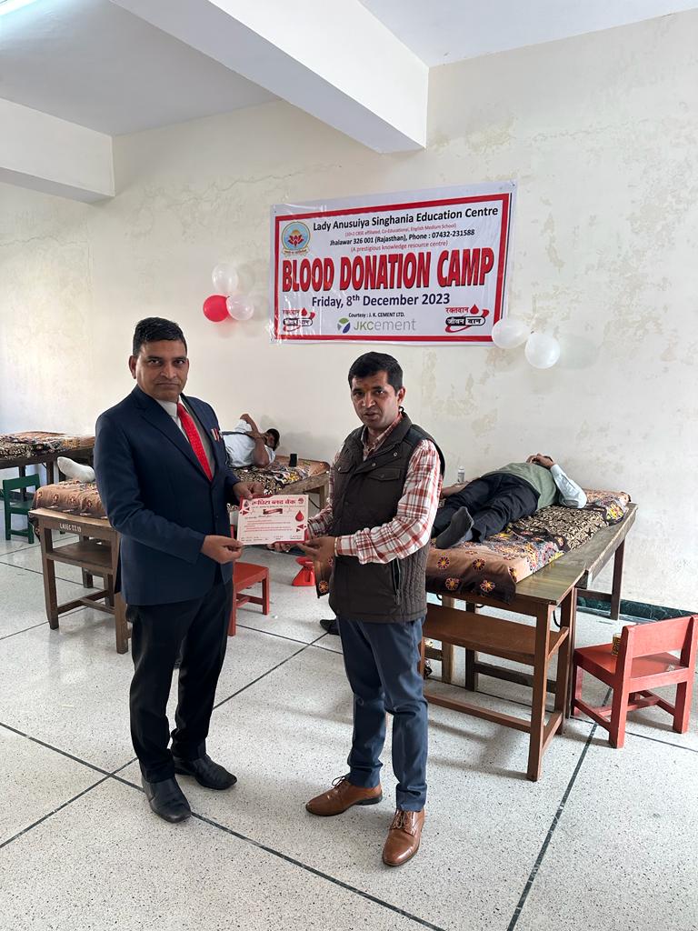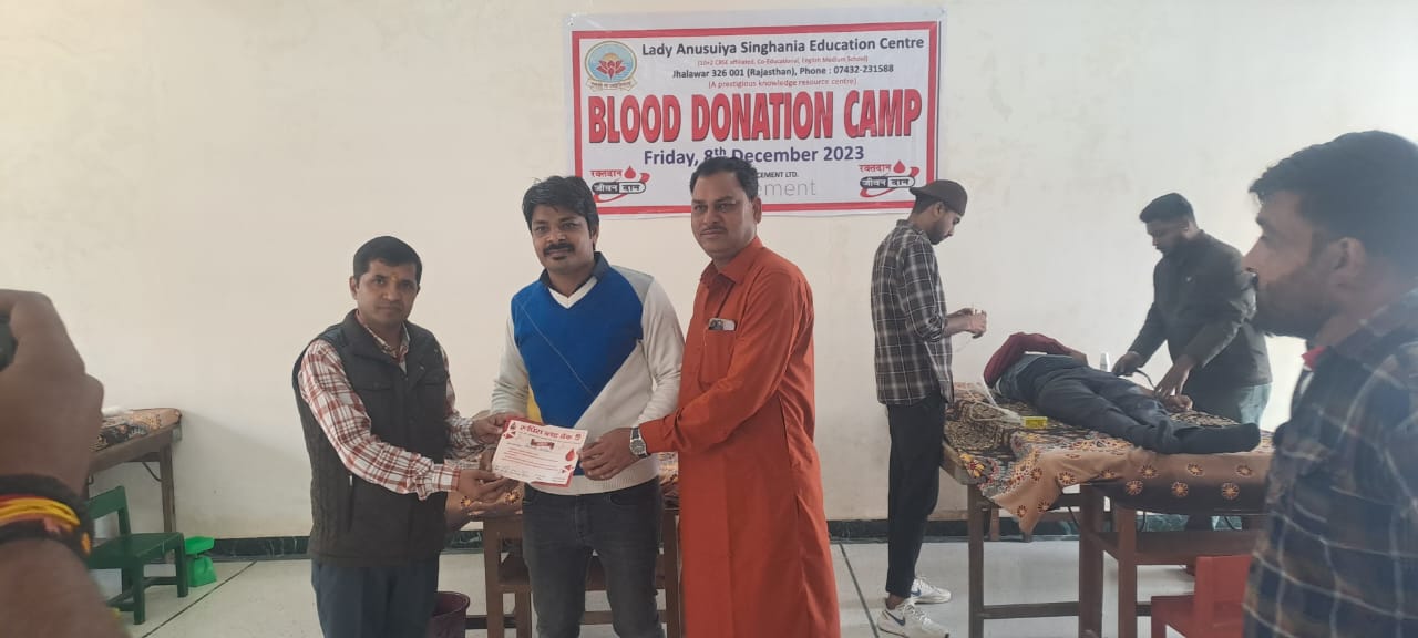 A blood donation camp has been organized in collaboration with Rudhira Blood Bank Society, Jhalawar. Our dedicated staff and parents actively participated in the blood donation camp.