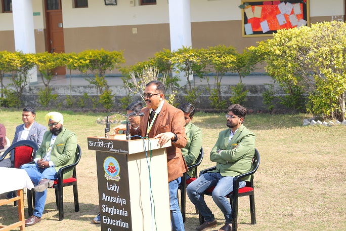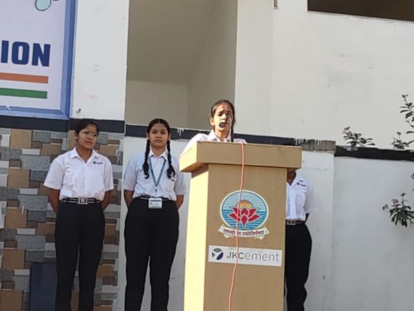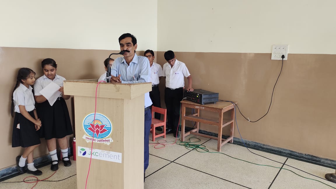 Mr. Manish Chaturvedi Hindi HoD threw light on the Life and contribution of Shri Singhania.
