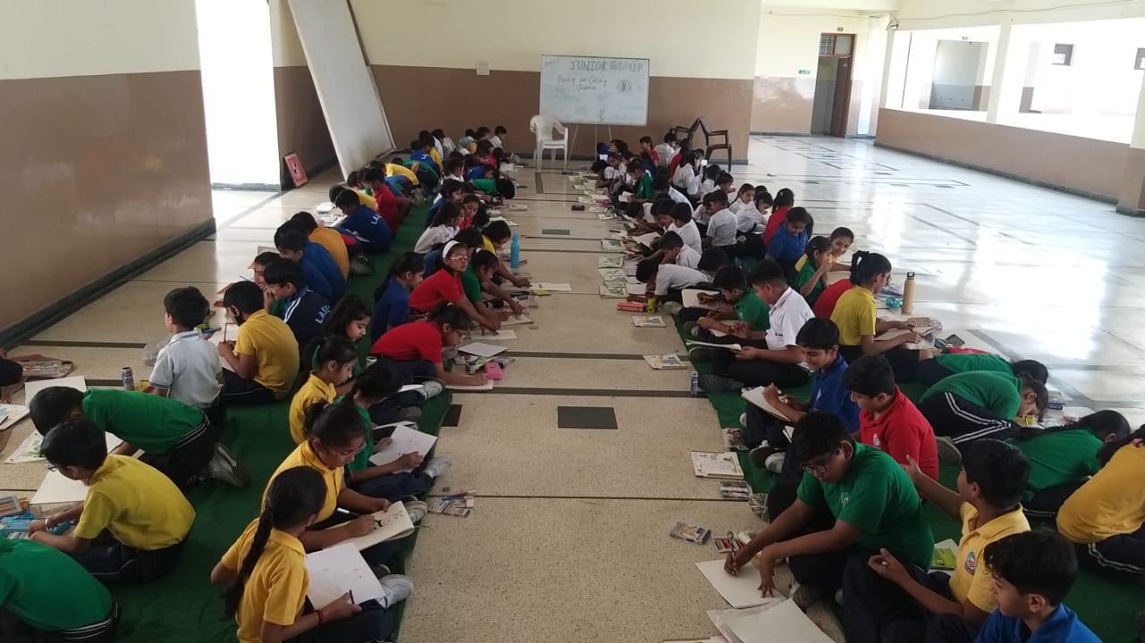 Drawing and Coloring competition was organized for classes III to V. Students showcase their talents and made beautiful drawings. Later the judgement was done by Art and Craft teacher Mr Ram Kailash of Govt Sr Sec School .