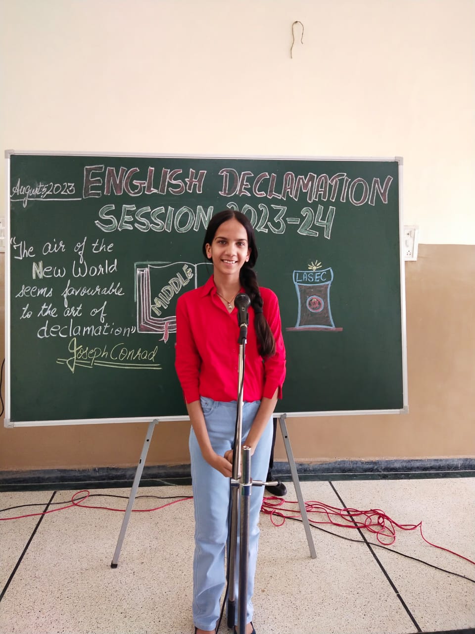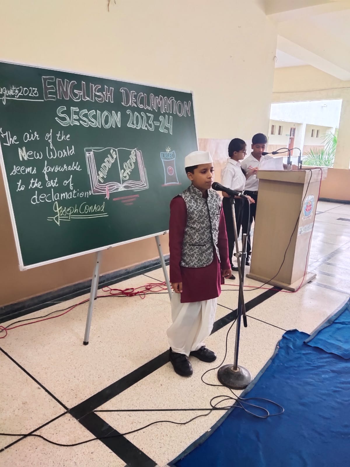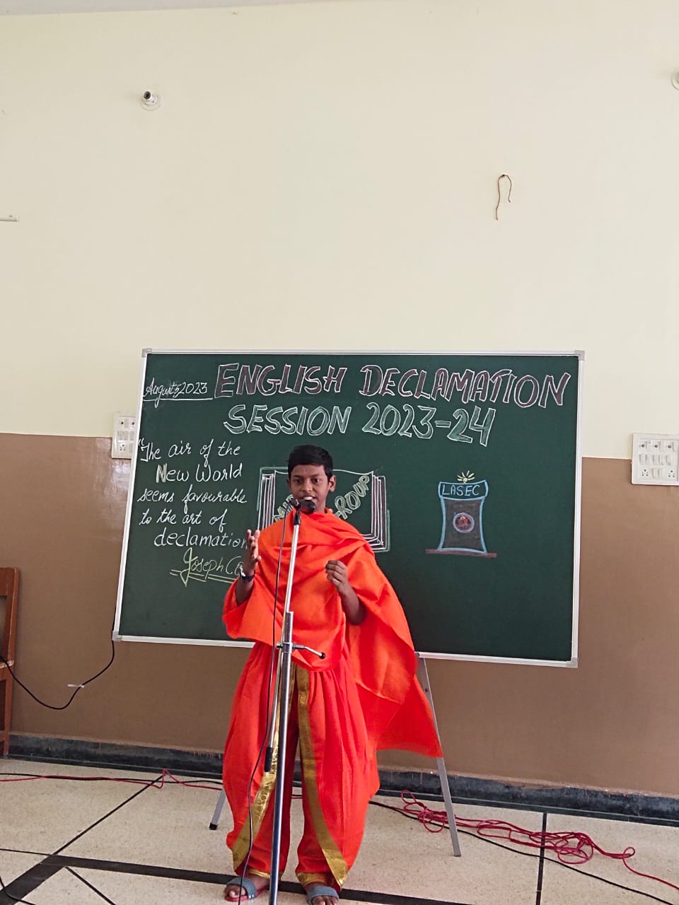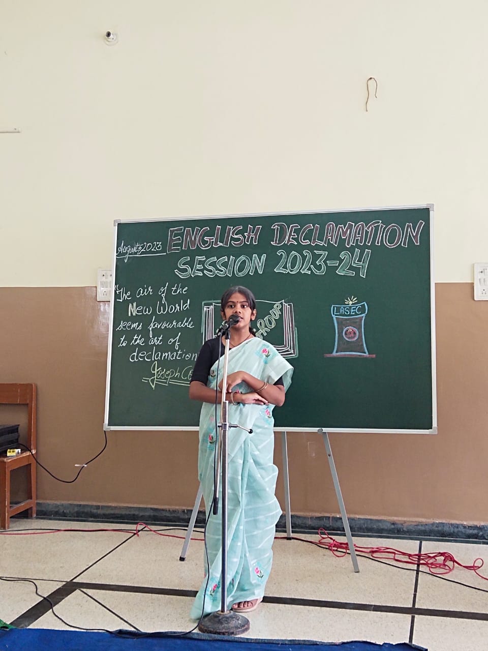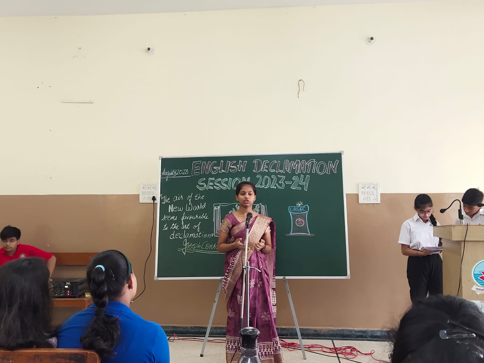 An Inter-House English Declamation competition was held on August 5, 2023 in the school. 'Declamation', derived from the Latin word ‘declaim’ means to speak in a rhetorical manner with a feel. This feel is to convey a social message with clarity, emotion and persuasiveness.