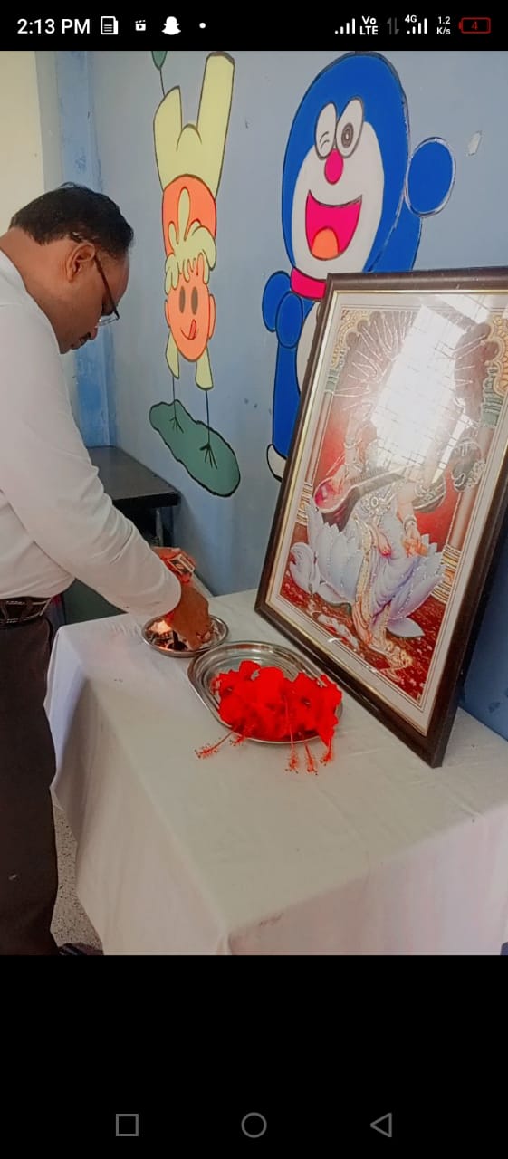The celebration started with a lovely prayer ‘Raghupati Raghav Raja Ram’ followed by the floral tribute by the Respected Principal Dr. Manoj Kumar Singh and all the teachers.