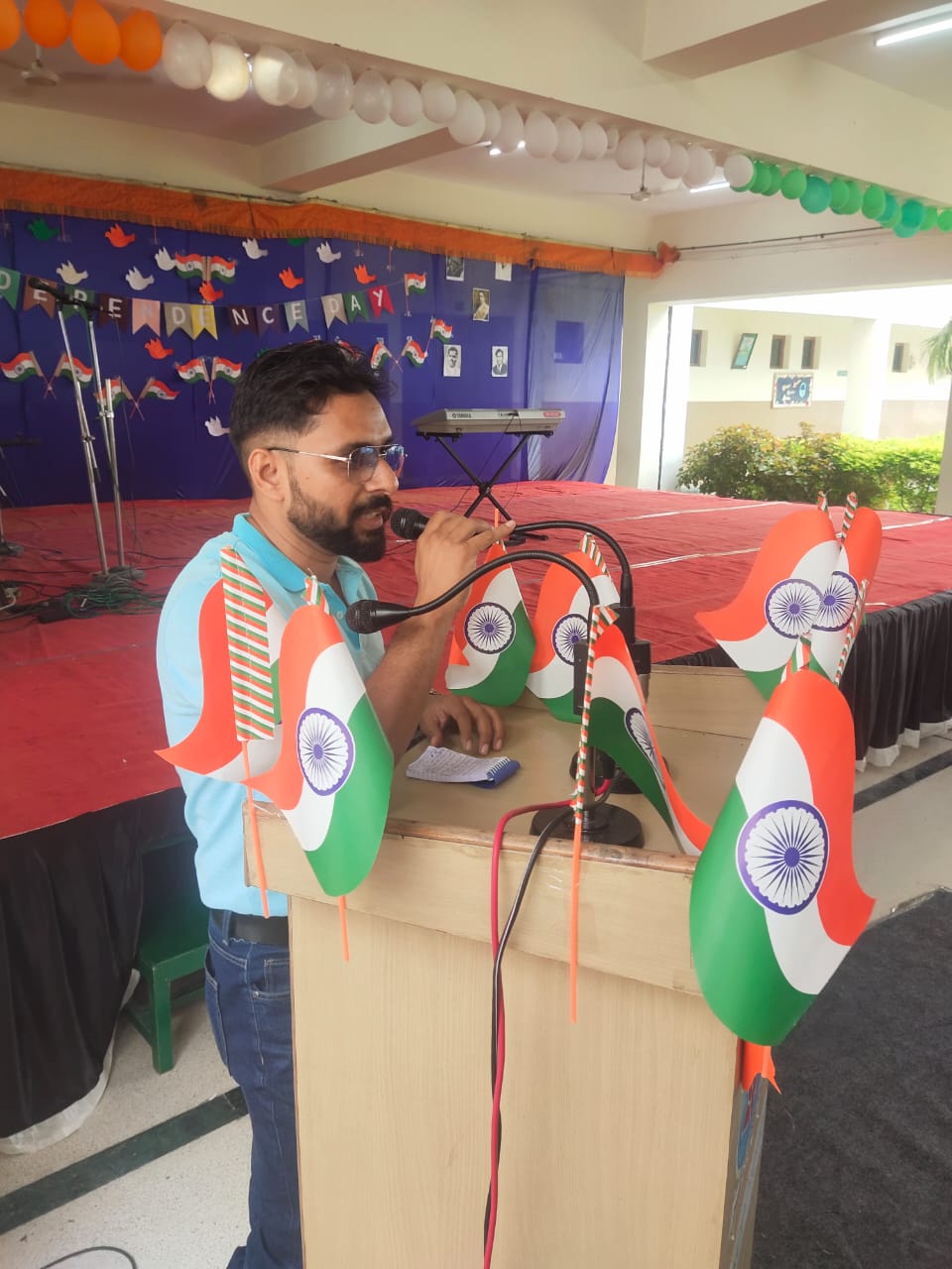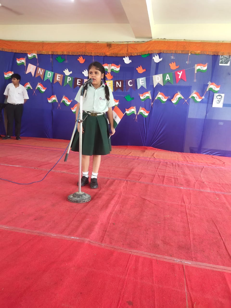 Independence Day Celebration at School. Program was initiated by Administrative Coordinator Mr. Manish Kumar Chaturvedi afterwards many students gave their performances in the form of dance, song and poem. Group dance was prepared by our dance teacher Mrs. Pinki and group song was prepared by Mr. Tulsi Ram Saini sir and anchoring was prepared by Mr. Sonu Rathore. Stage decoration was done under the supervision of Mr. Ankur Sharma and Independence Day speech was given by Mr. Mahendra Singh Naruka. Our students also performed at Police Stadium and were escorted by Mr. Devendra Singh, Mr. Mayank Suman and Mr. Ajay Joshi. Chief guest Mr. H.C.Meena explained the importance of independence day and vote of thanks was given by Mr. Mumtaz Khan CCA incharge.