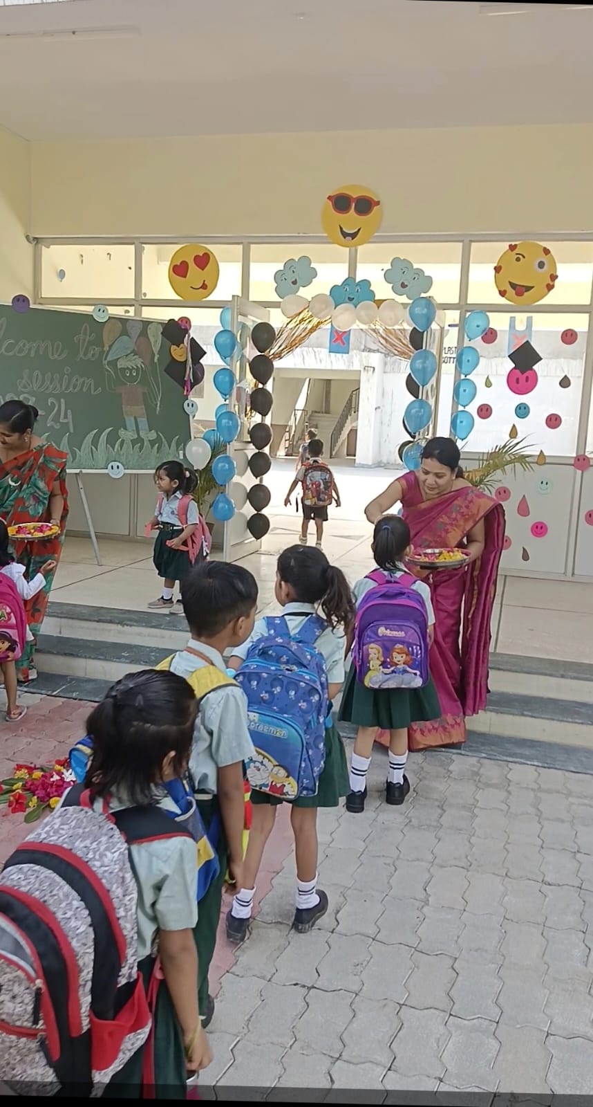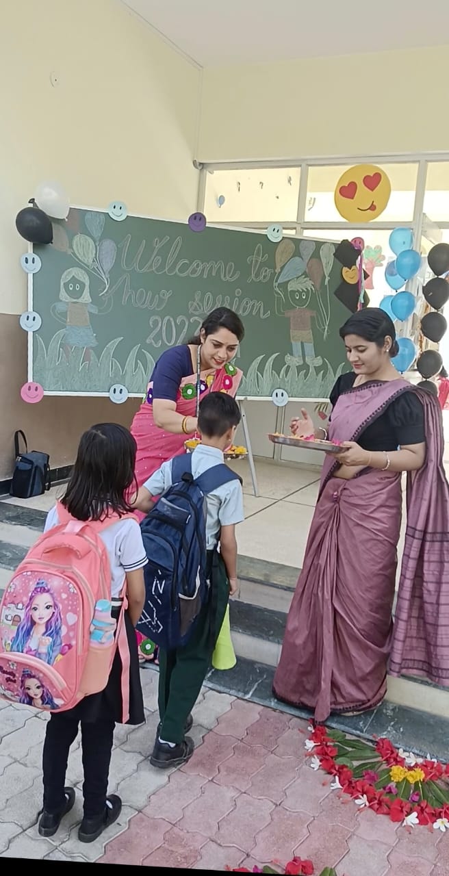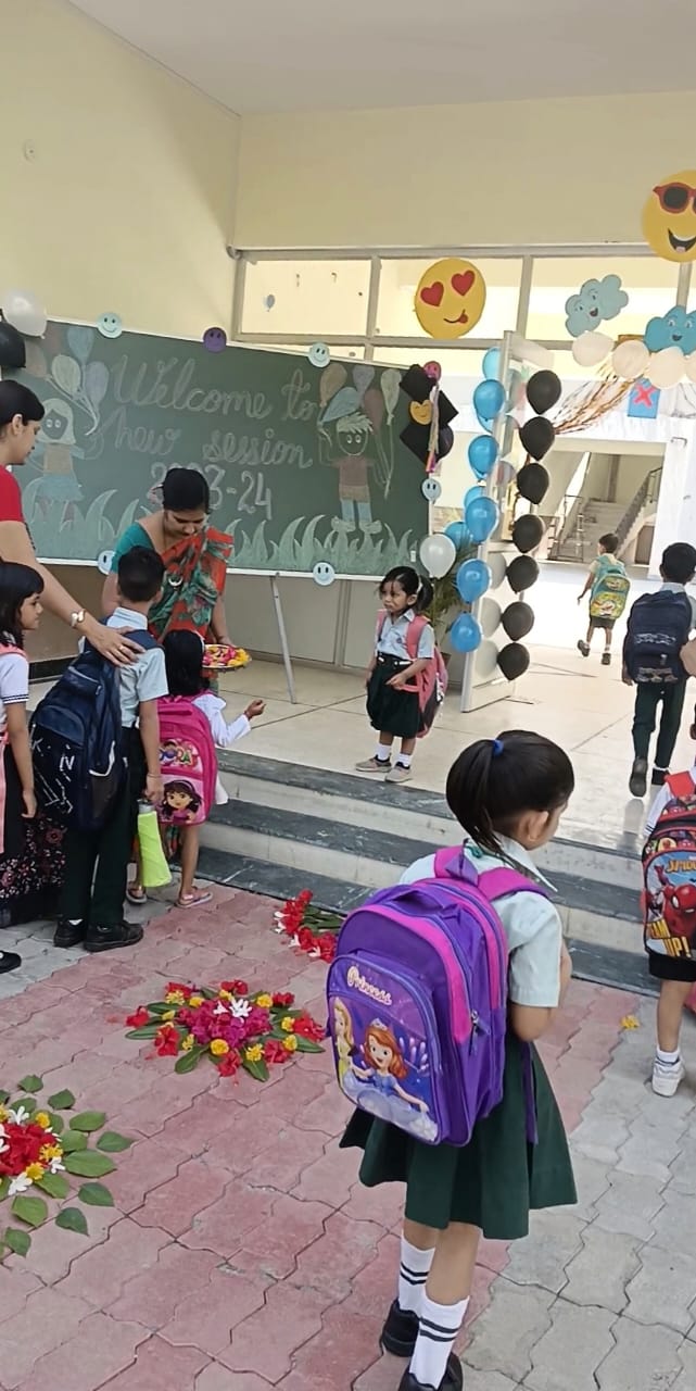 A Cheerful "Welcome” helps children for a positive start to their school journey. L.A. Singhania Education Centre marks the beginning of new session 2023-24 on April 6th, 2023 with great zeal and zest. To make this journey an exciting, successful and happy experience for all the children, the school entrance was decked up with colourful balloons and buntings.The tiny-tots were overwhelmed with the affectionate welcome extended by the Principal and teachers at the main gate.