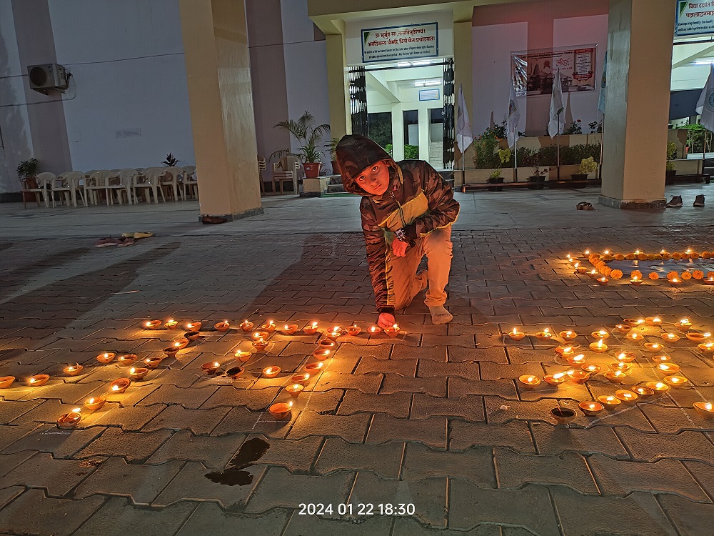 The school family has illuminated 1100+ diyas to participate in the festivities Ram Mandir Inauguration Celebration on January 22, 2024.
