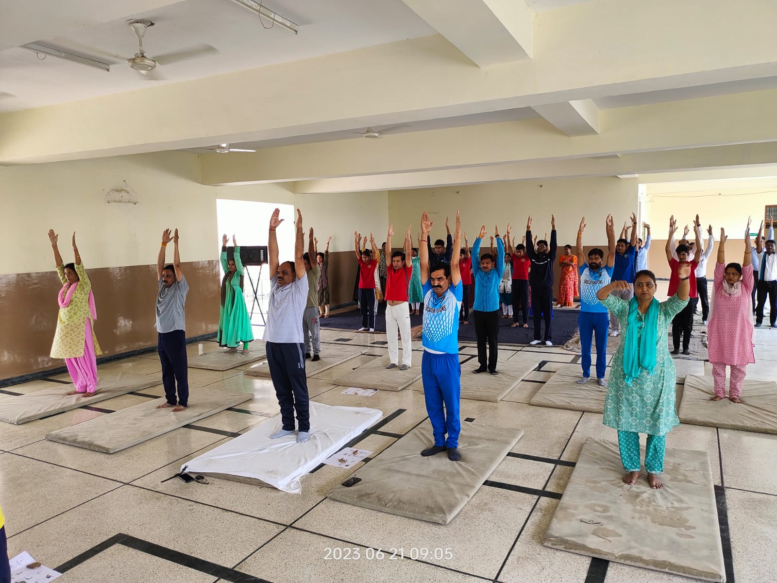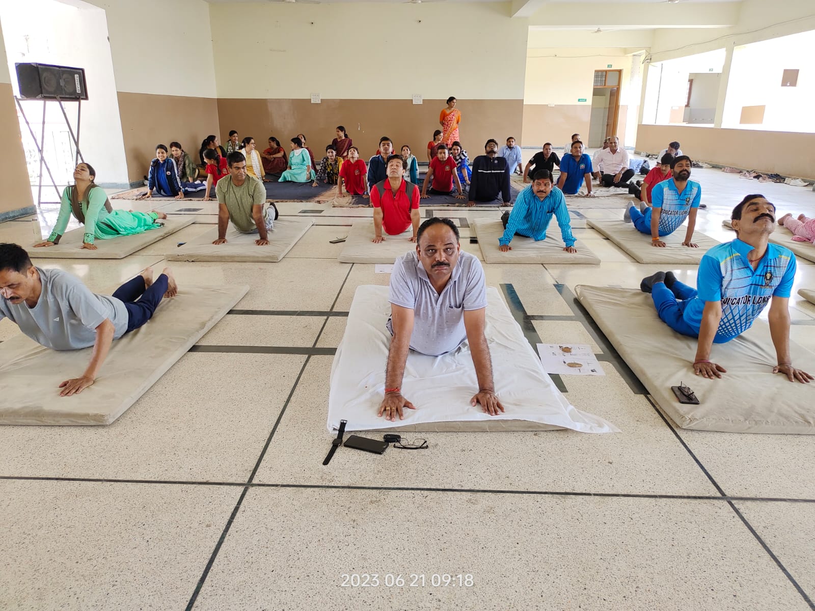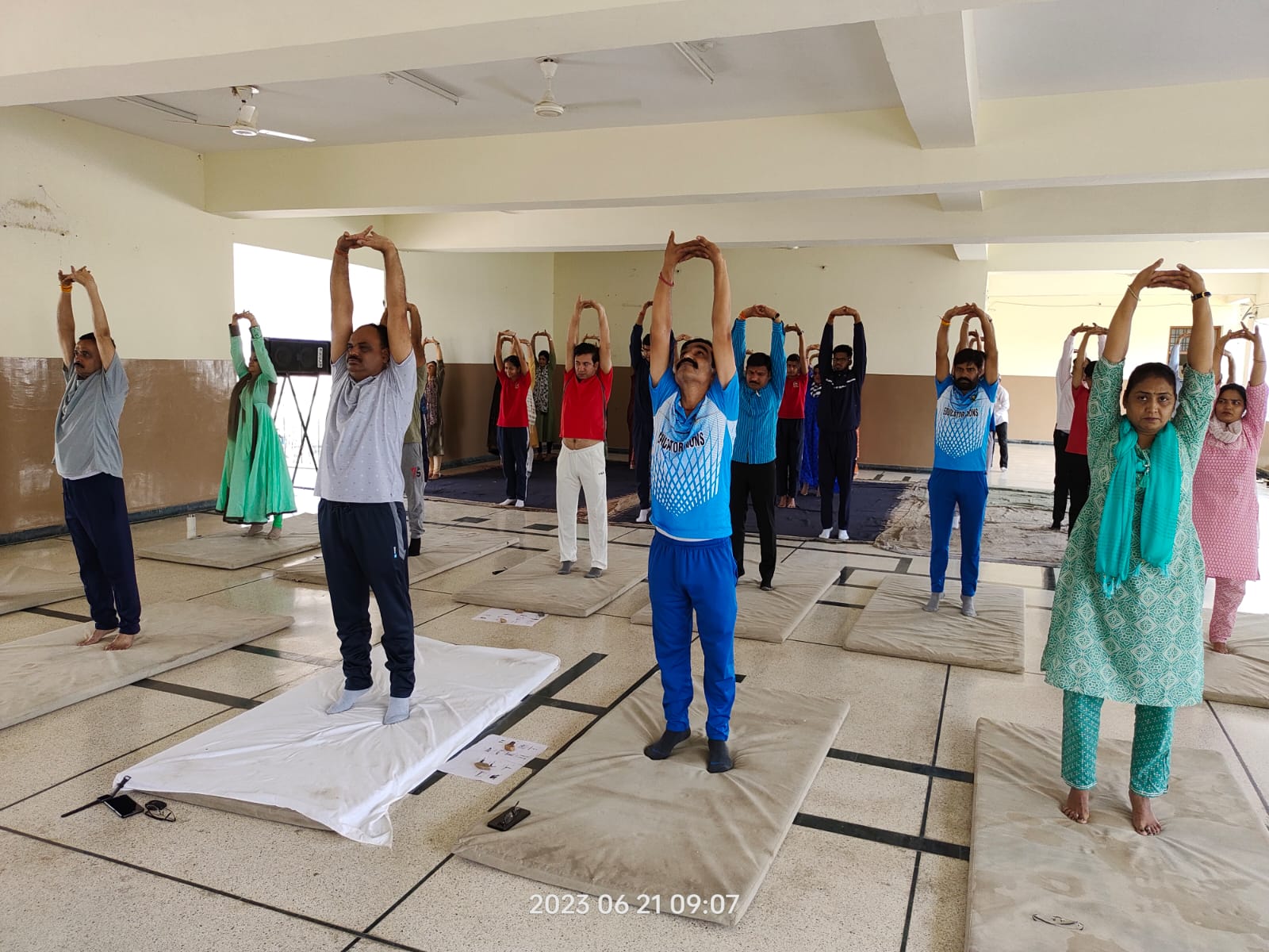 International Yoga Day was celebrated at Lady Anusuya Singhania Education Center Jhalawar. Under the guidance of Physical education teachers Ranveer Singh Hada and Ajay Joshi, students and teachers gave the message of staying fit through Yogasanas. Students Anirudh Mishra and Raghav Khandelwal explained to the staff and students the correct way of doing asanas like Surya Namaskar, Bhujangasana, Gomukhasana, Makarasana, Shavasana, Mandukasana, Chandrasana, Paschimottasana, Dhyan Mudra etc. and their benefits.