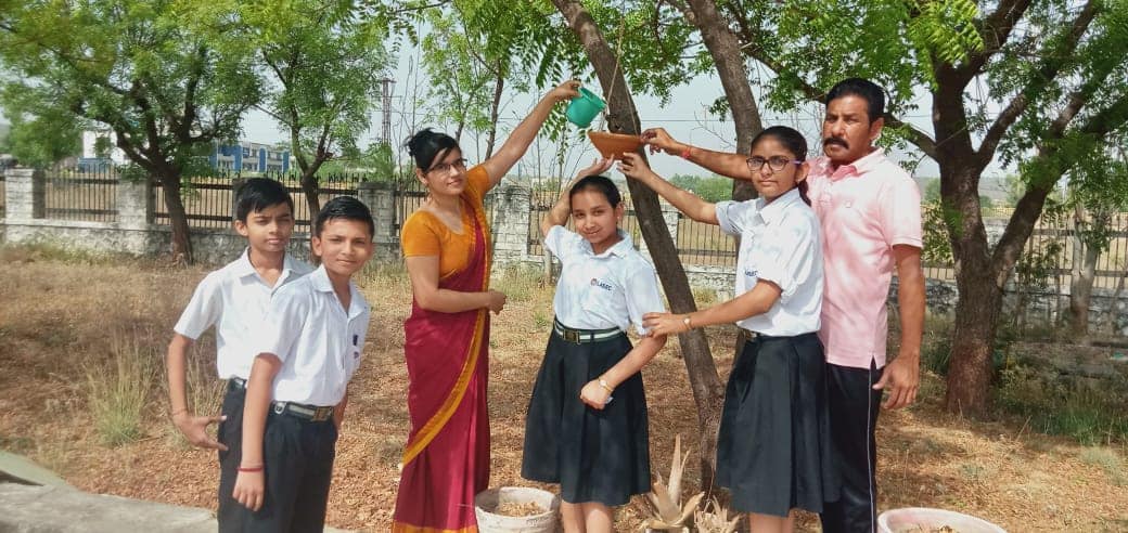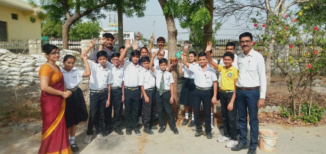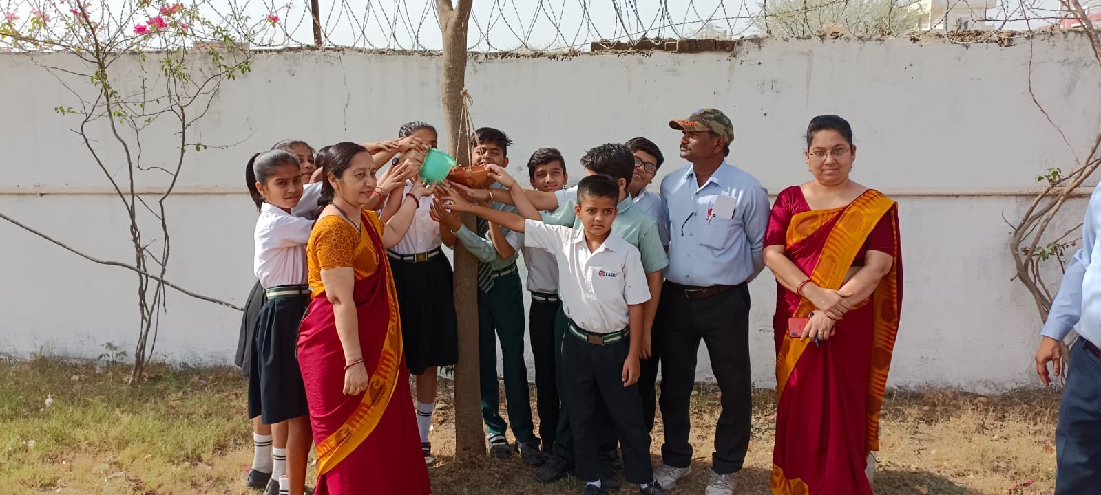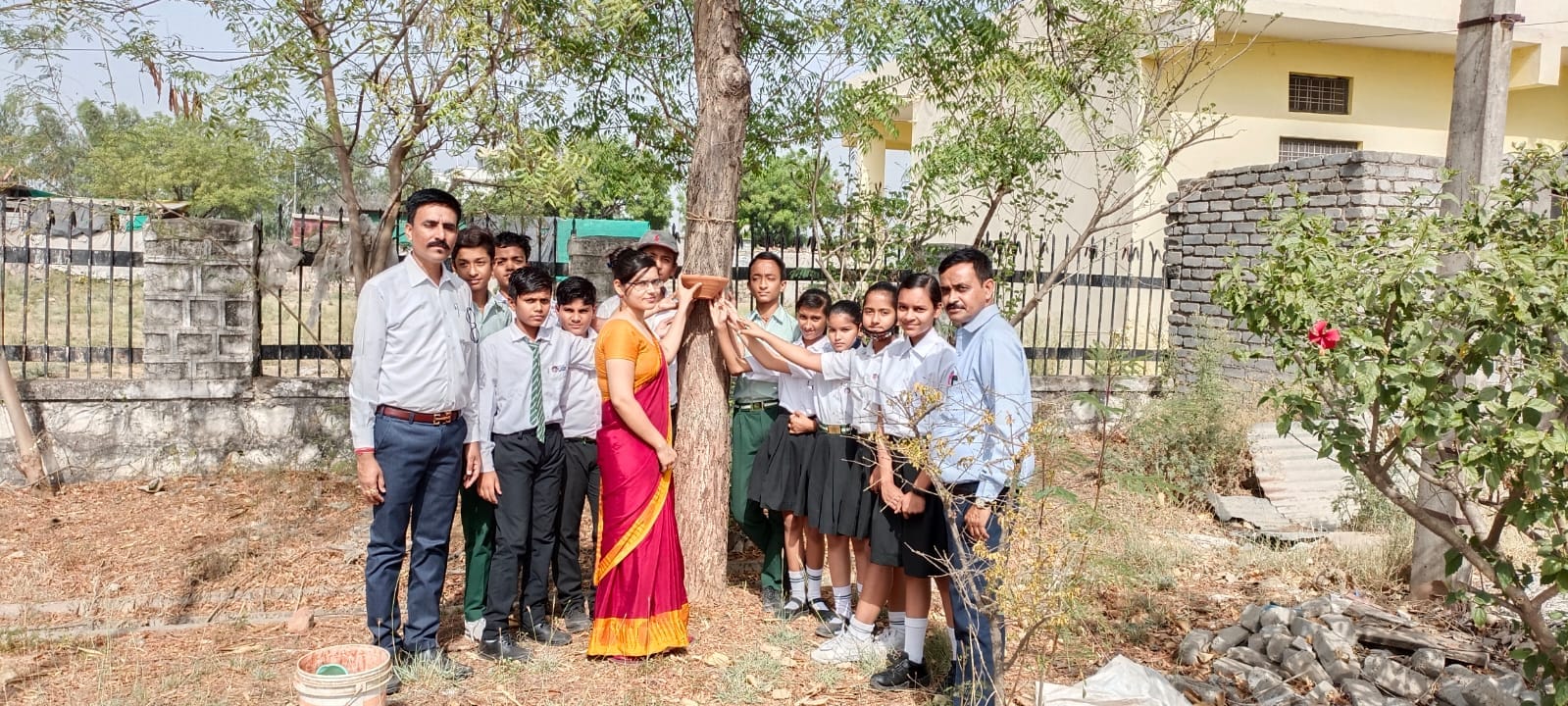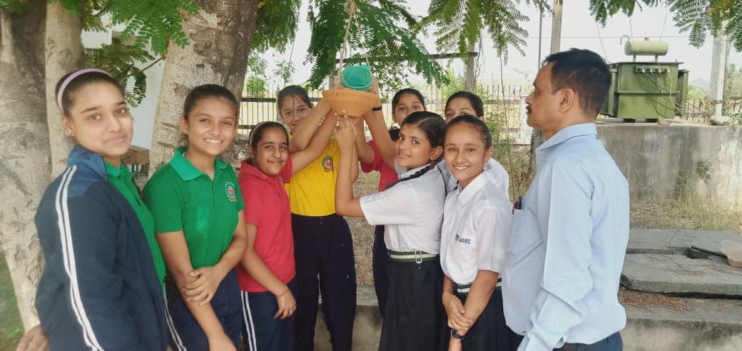 students tied Parindey (earthen pots) on the branches of the shady trees all around in the school campus to provide food and