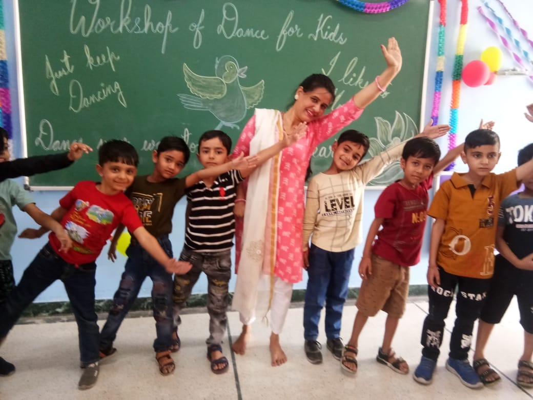 concluding day of the dance workshop - Students experiencing a magical hour of joyful dance and building