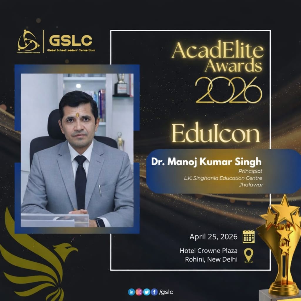 At the GSLC Acadelite Awards 2026, we proudly recognise *Dr. Manoj Kumar Singh, Principal, L.K. Singhania Education Centre (J.K. Cement Group) as an EduIcon* -a recognition for those who shape academic excellence with vision and purpose.