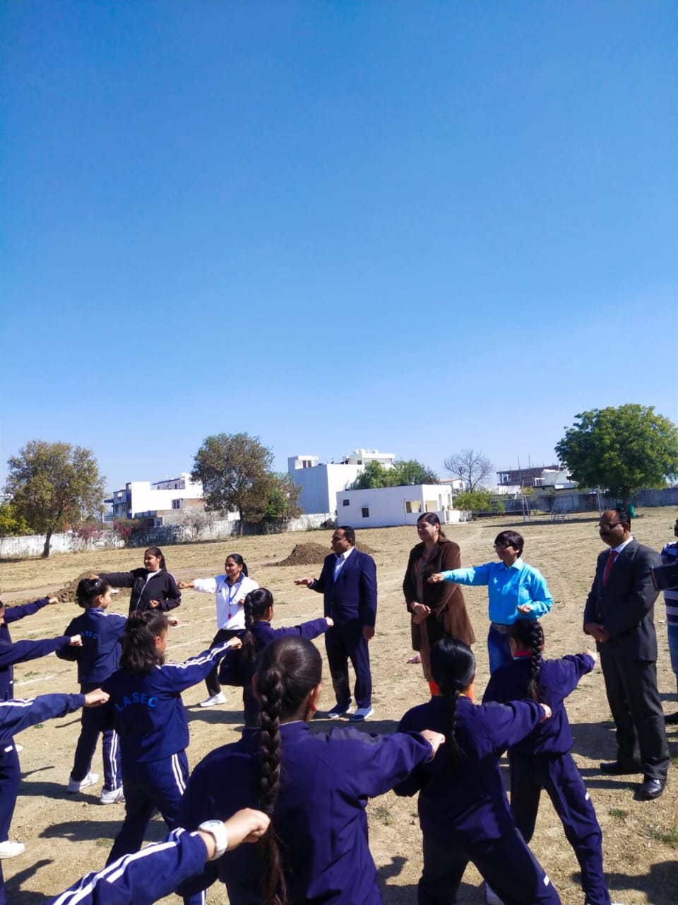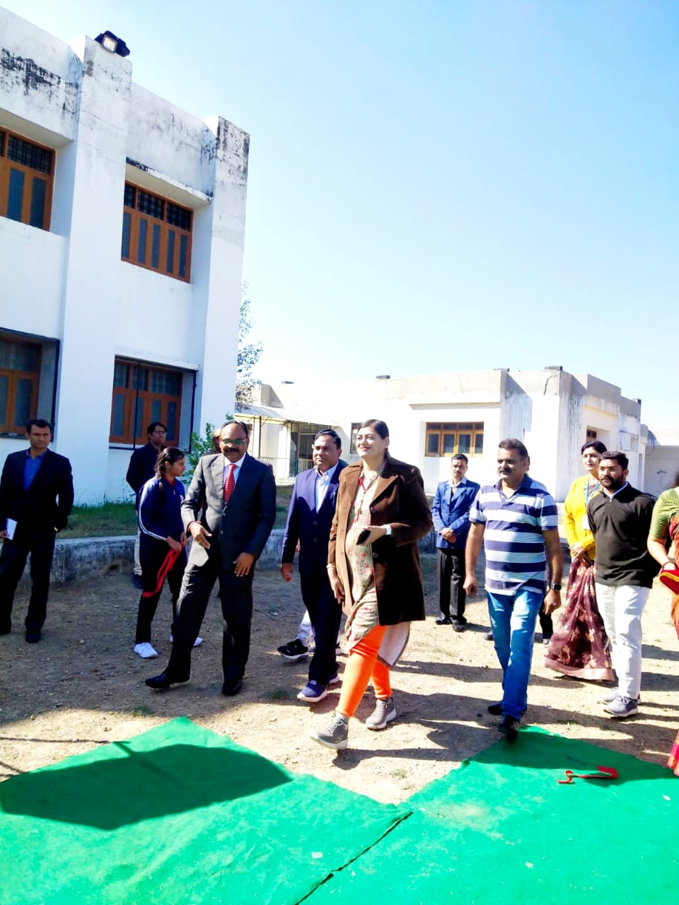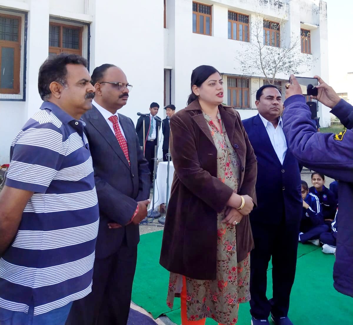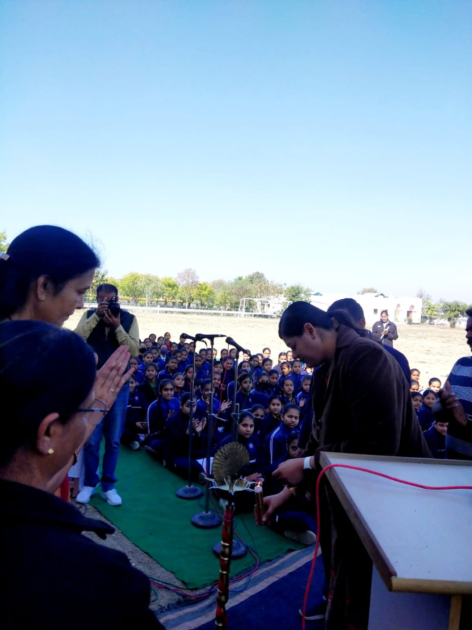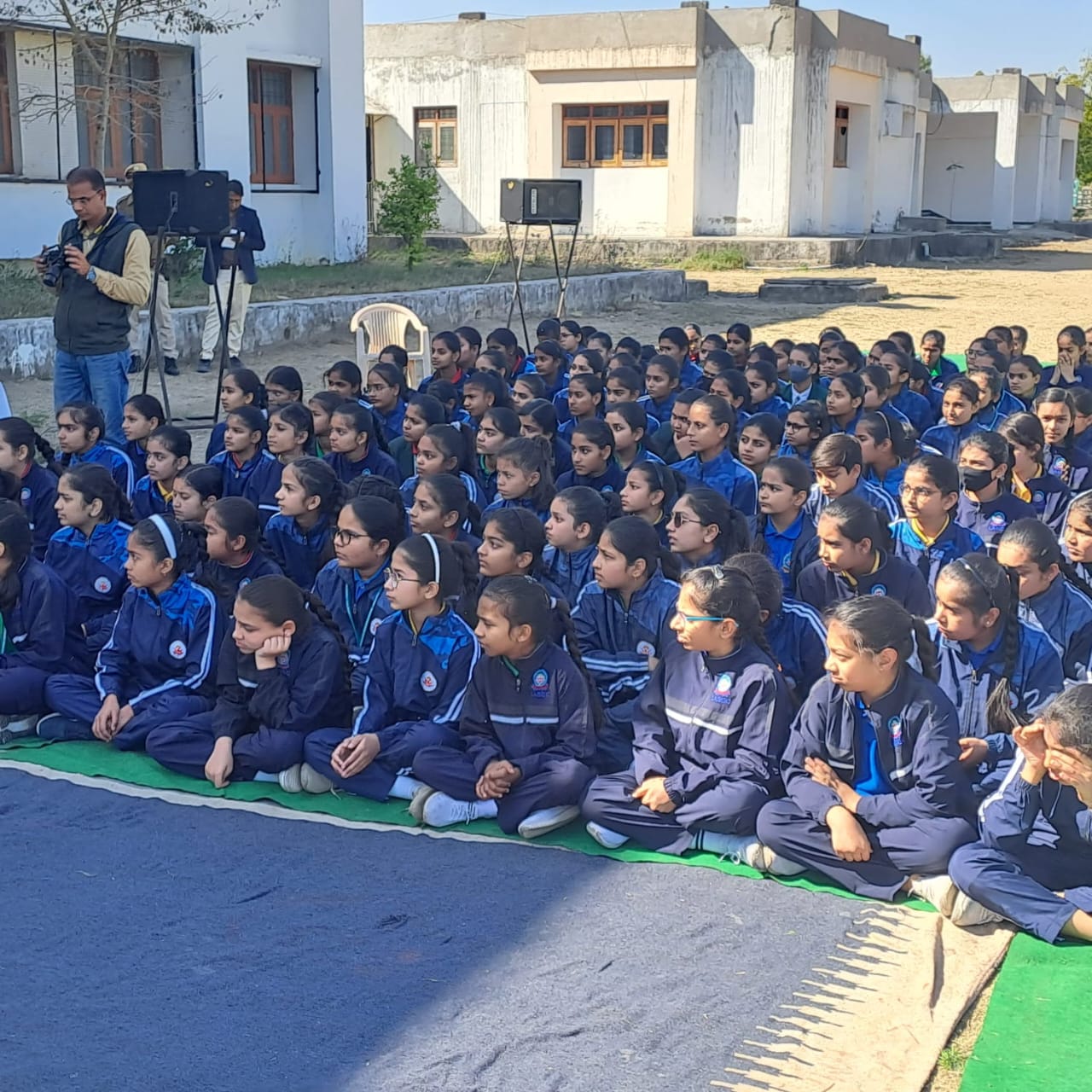 Seven days workshop on self defense for girls of VI to IX and XI was inaugurated by District Collector Dr Bharti Dixit. She was welcomed by Principal Dr Arunesh Saxena. Along with her , Shri Hans Raj Meena ADEO Jhalawar and Shri Kripa Shankar Sports Officer also graced the occasion. Group of girls sang school song to welcome guests.