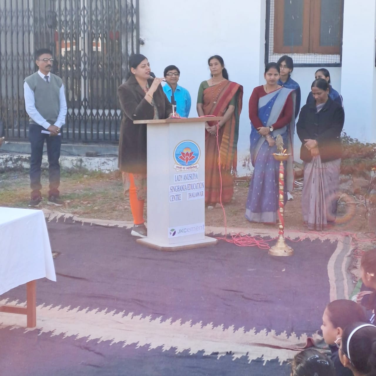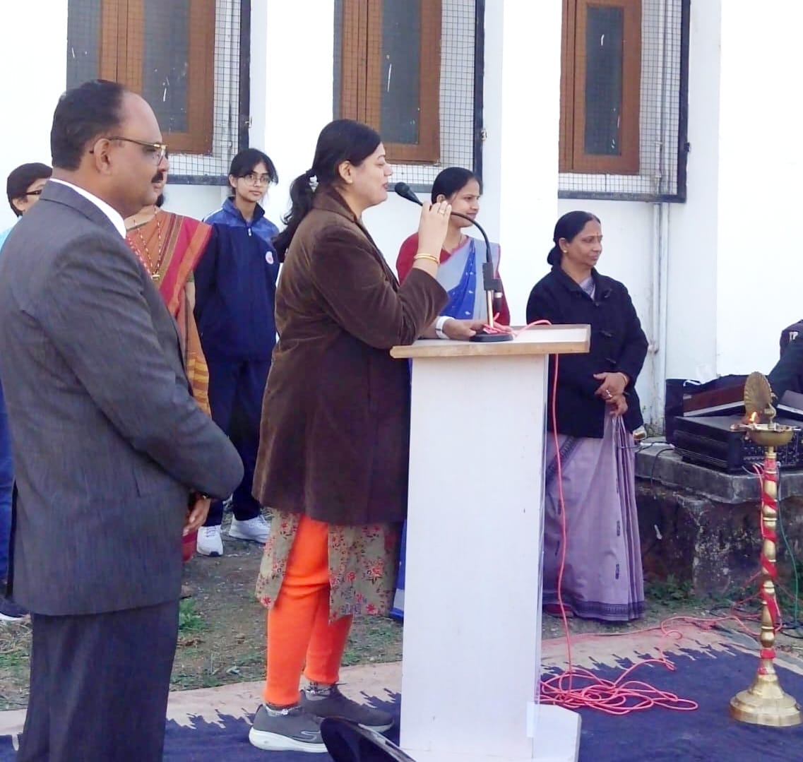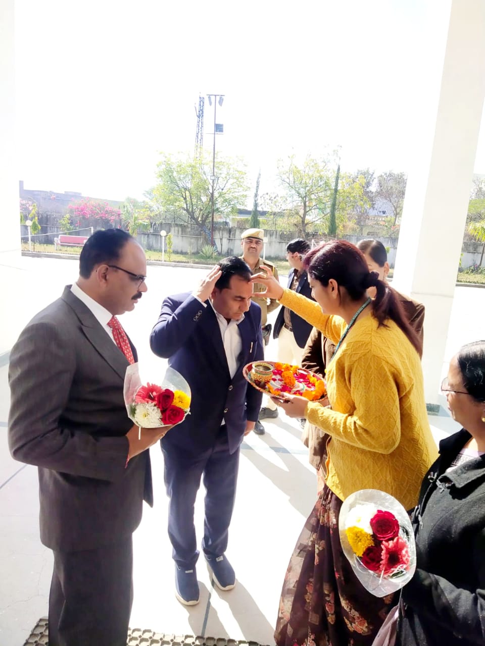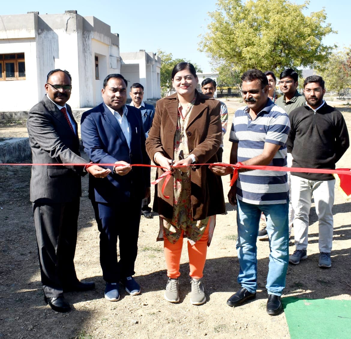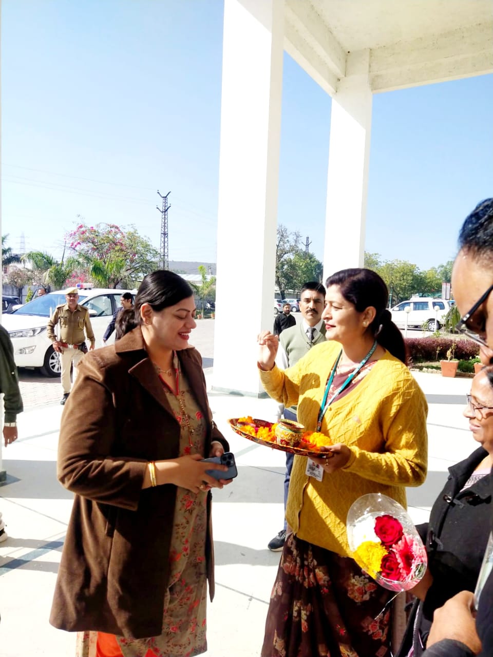 Seven days workshop on self defense for girls of VI to IX and XI was inaugurated by District Collector Dr Bharti Dixit. She was welcomed by Principal Dr Arunesh Saxena. Along with her , Shri Hans Raj Meena ADEO Jhalawar and Shri Kripa Shankar Sports Officer also graced the occasion. Group of girls sang school song to welcome guests.
